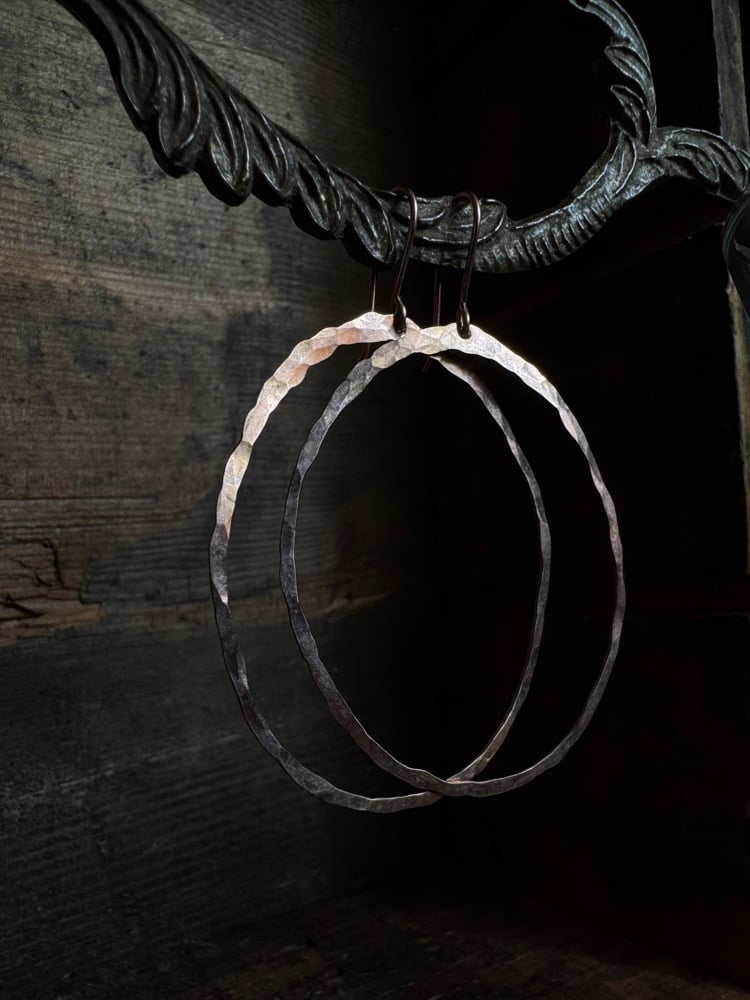 Handmade organic (shape & design) 14k rose gold-filled hoops! These are super shiny with a pinkish hue! Sometimes hard to capture their exquisite nature on camera (much like the moon!!!) but I promise they are sparkly and pink!
